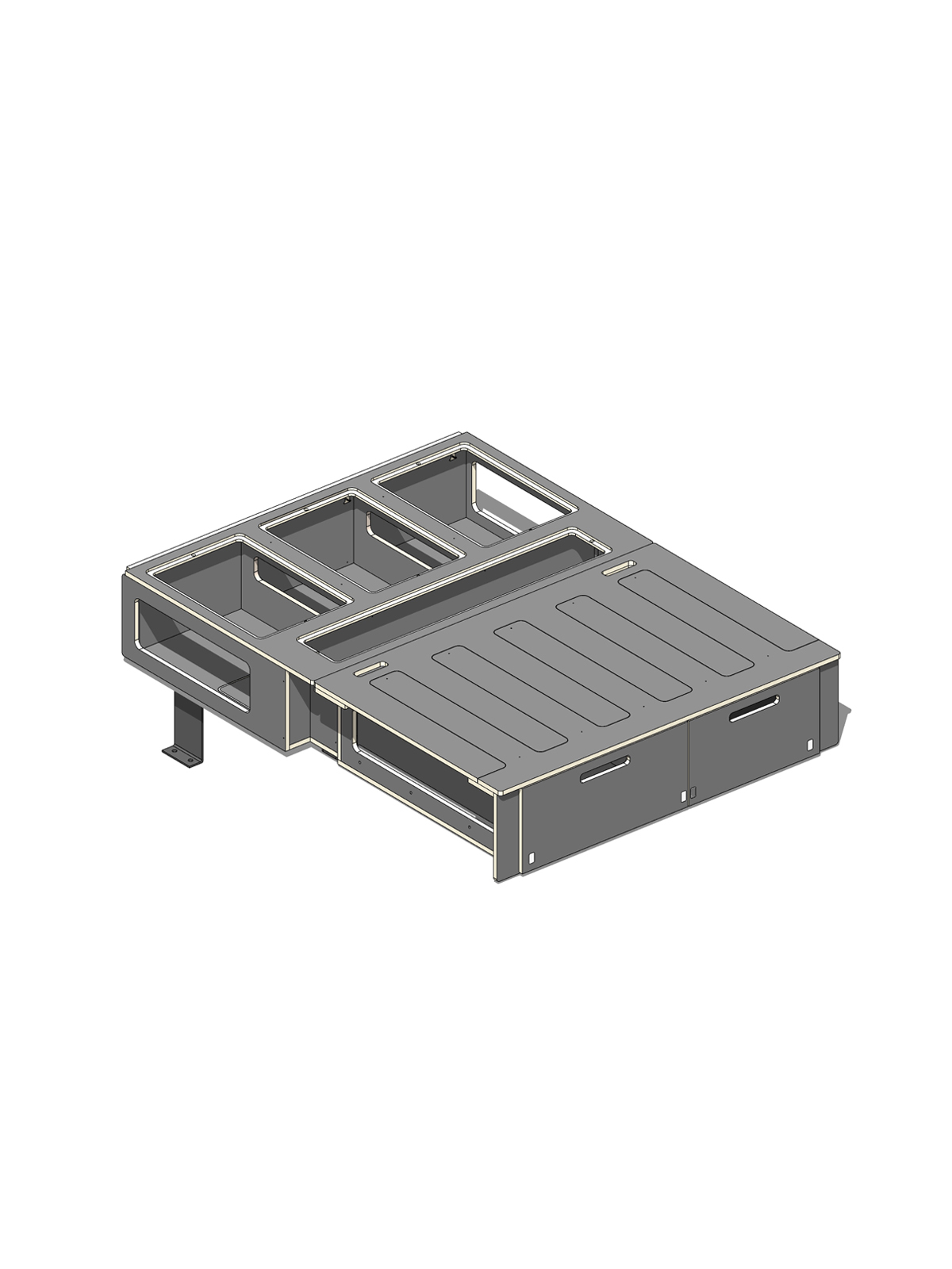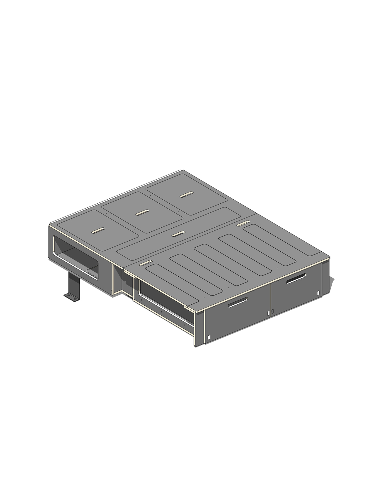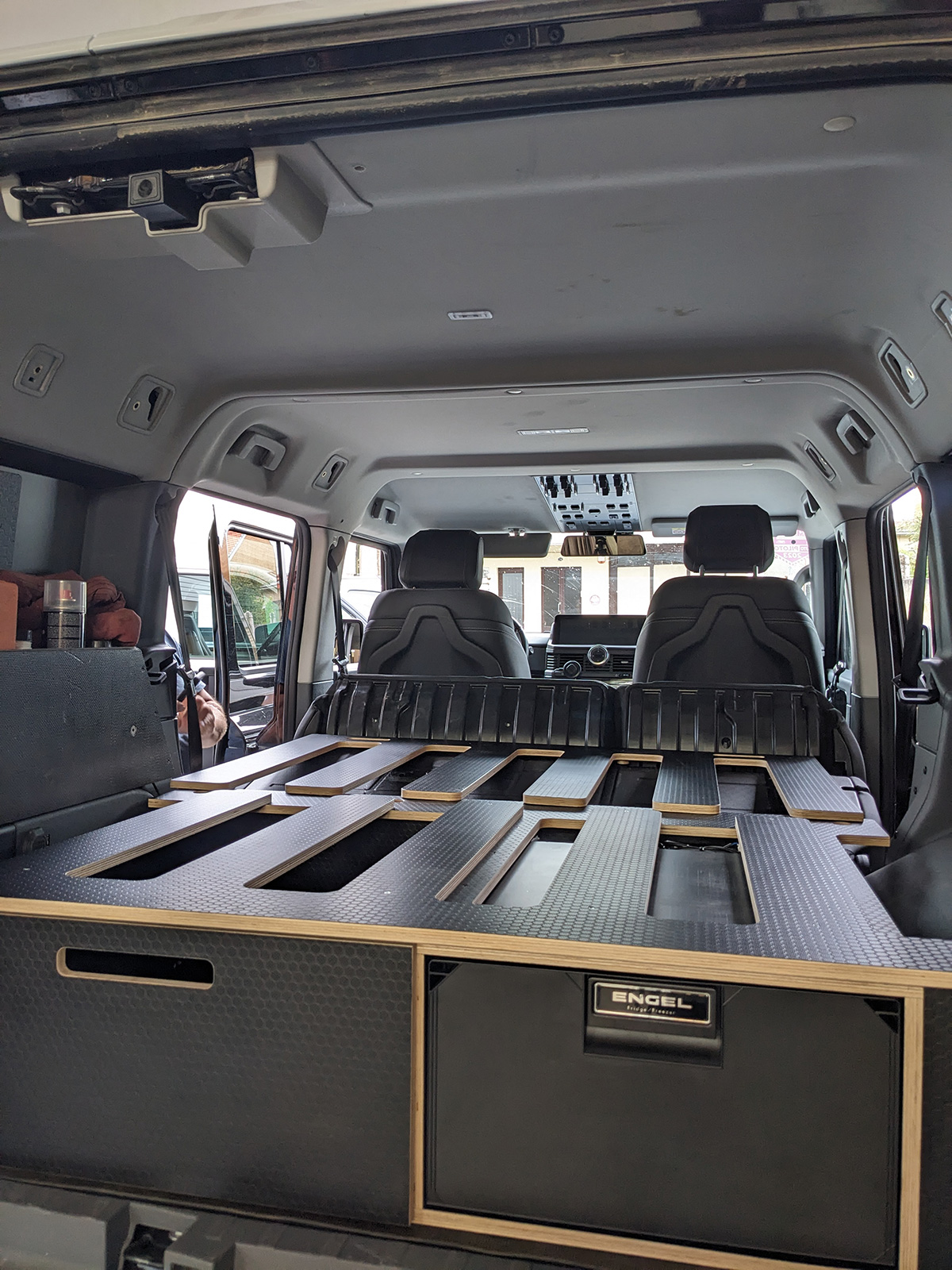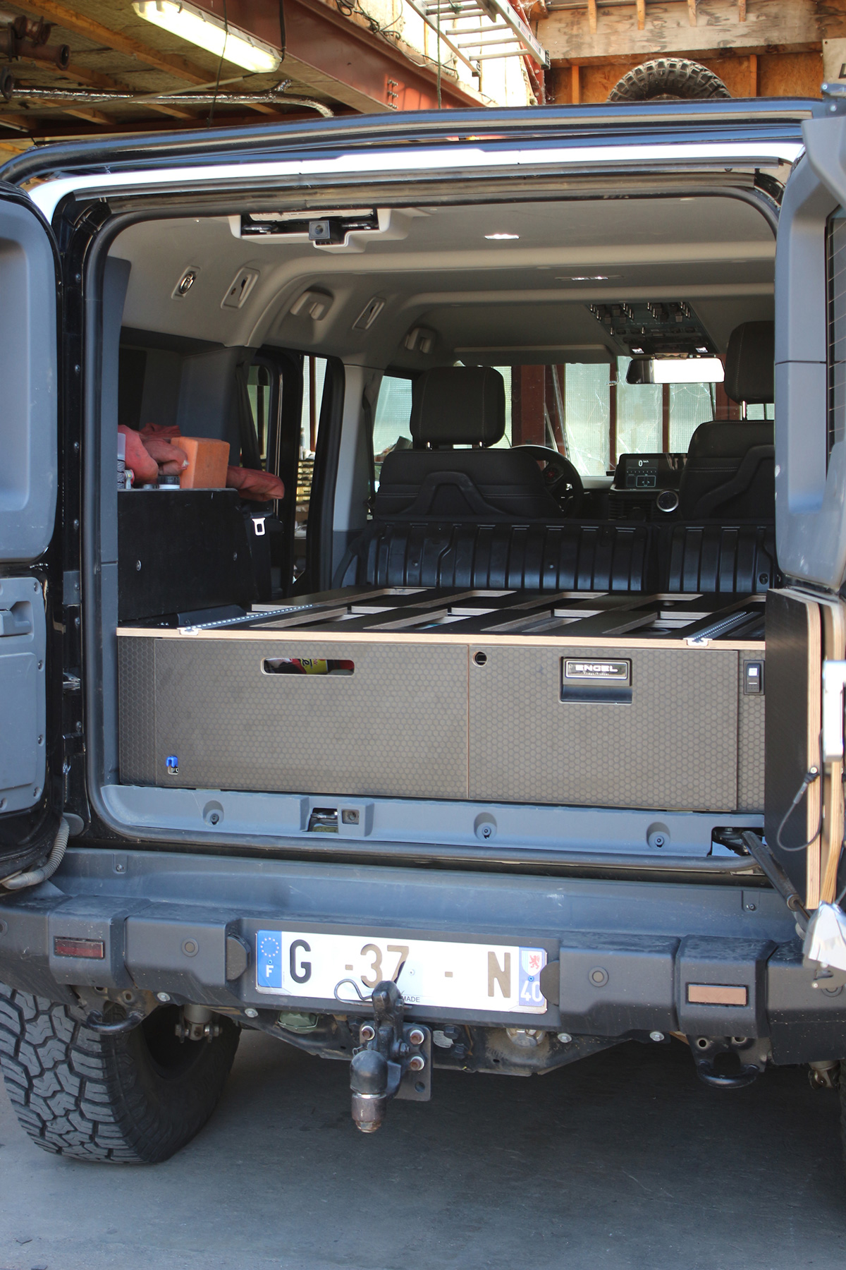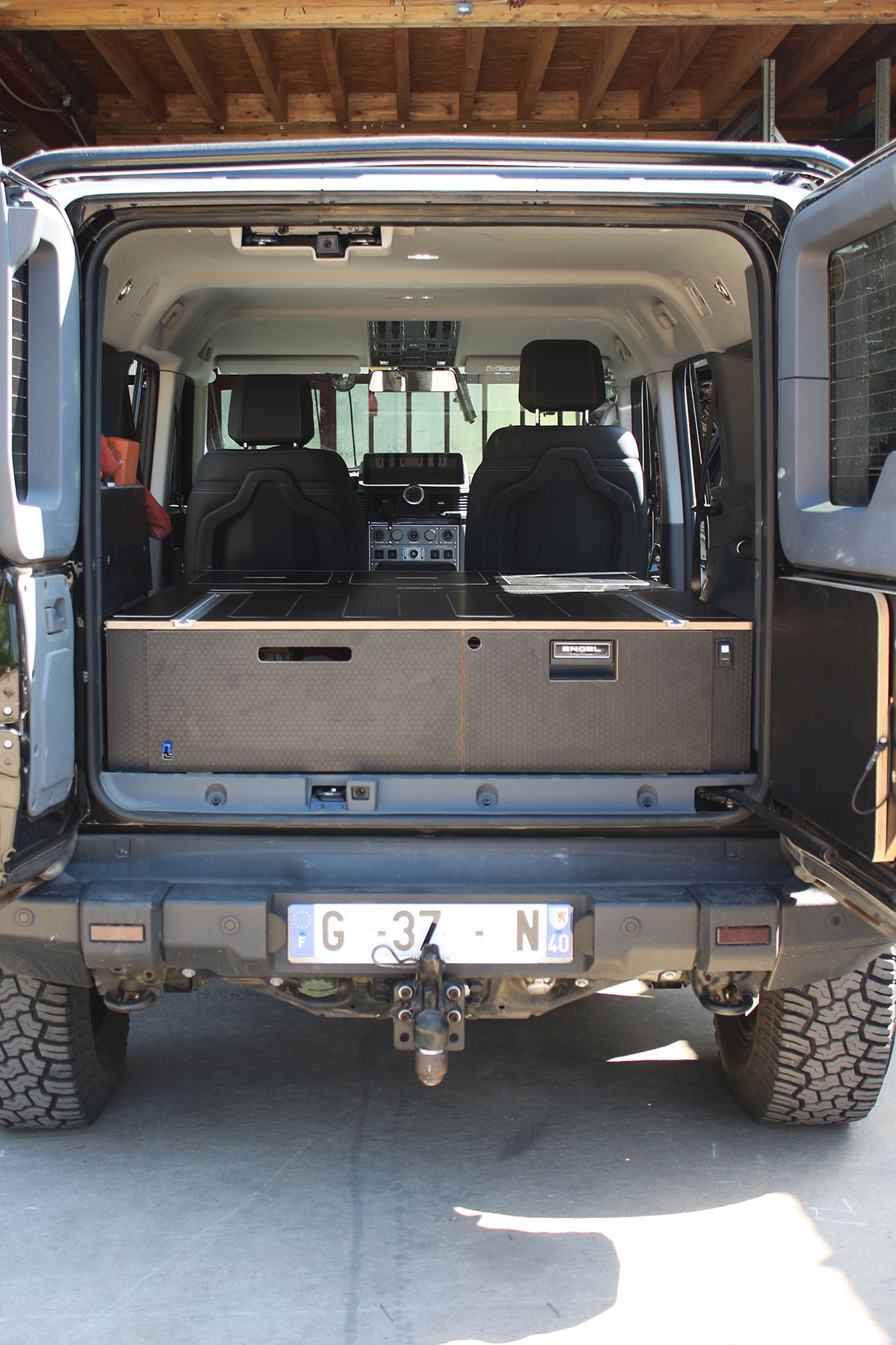 Transformez votre Ineos Grenadier en quelques minutes, avec des rangements et un couchage intérieur.